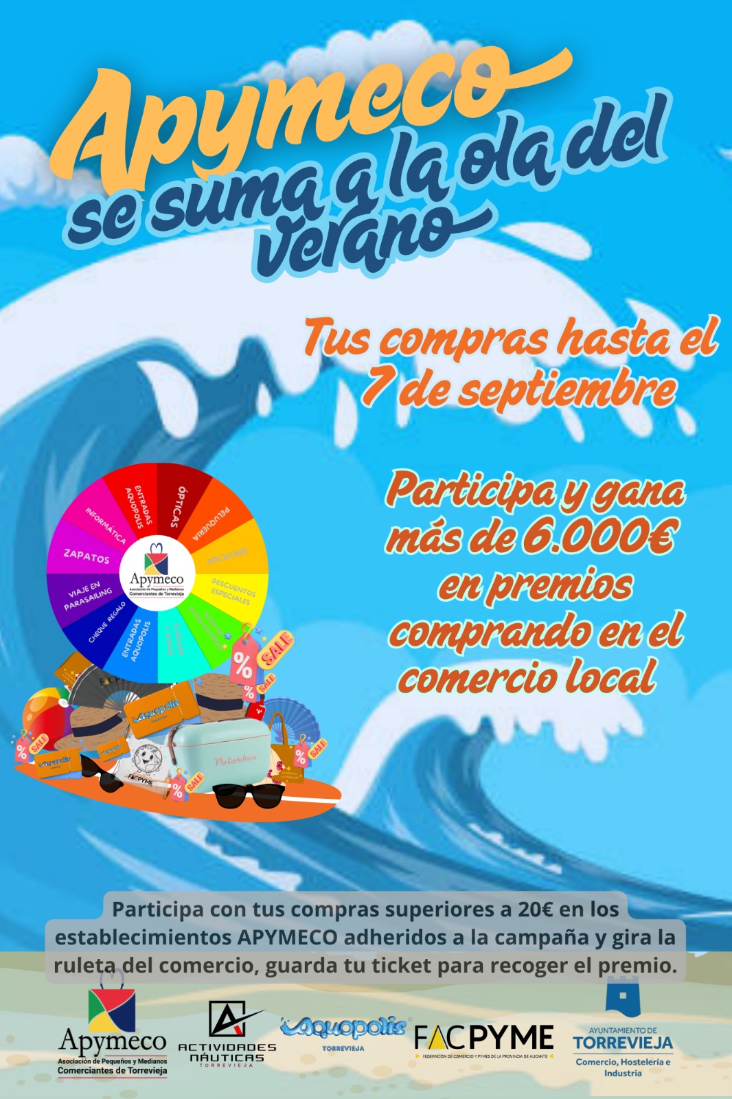 La ruleta está llena de regalos directos, descuentos, actividades de ocio y experiencias inolvidables gracias a la colaboración de Concejalía de Comercio, Ayuntamiento de Torrevieja, Aquópolis Torrevieja, Actividades Náuticas Torrevieja, FACPYME (Federación Alicantina de Comercio de la Pequeña y Mediana Empresa), y numerosos comercios asociados.