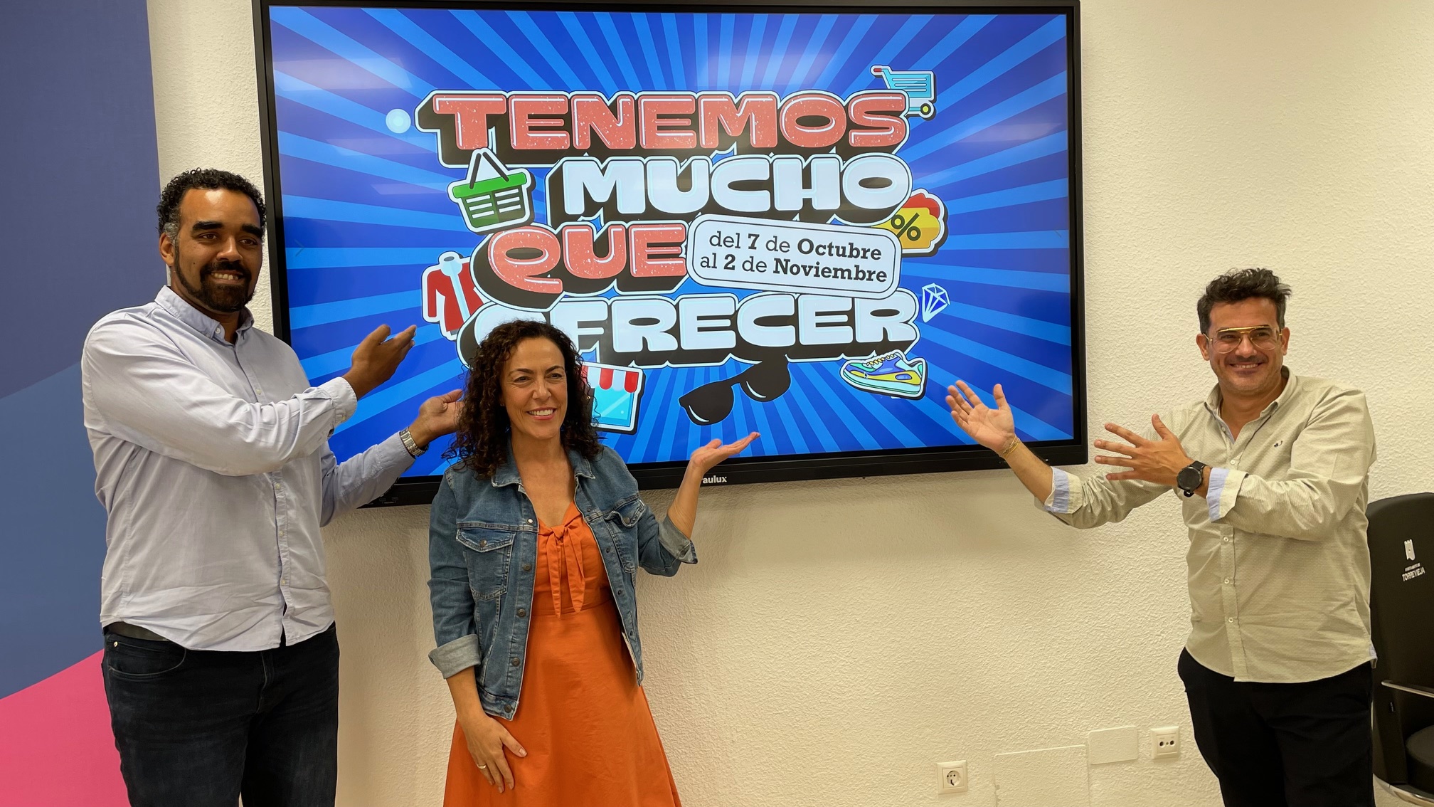 La concejal de Comercio, Hostelería y Turismo del Ayuntamiento de Torrevieja, Rosario Martínez, el presidente de APYMECO, Jorge Almarcha y Amadú Sow, responsable de eventos DANRA, han presentado el amplio programa de actividades que se van a llevar a cabo dentro del “Mes del Comercio Local”, que organiza el Ayuntamiento de Torrevieja y que se desarrollará del 7 de octubre al 2 de noviembre en diferentes puntos de la ciudad.
