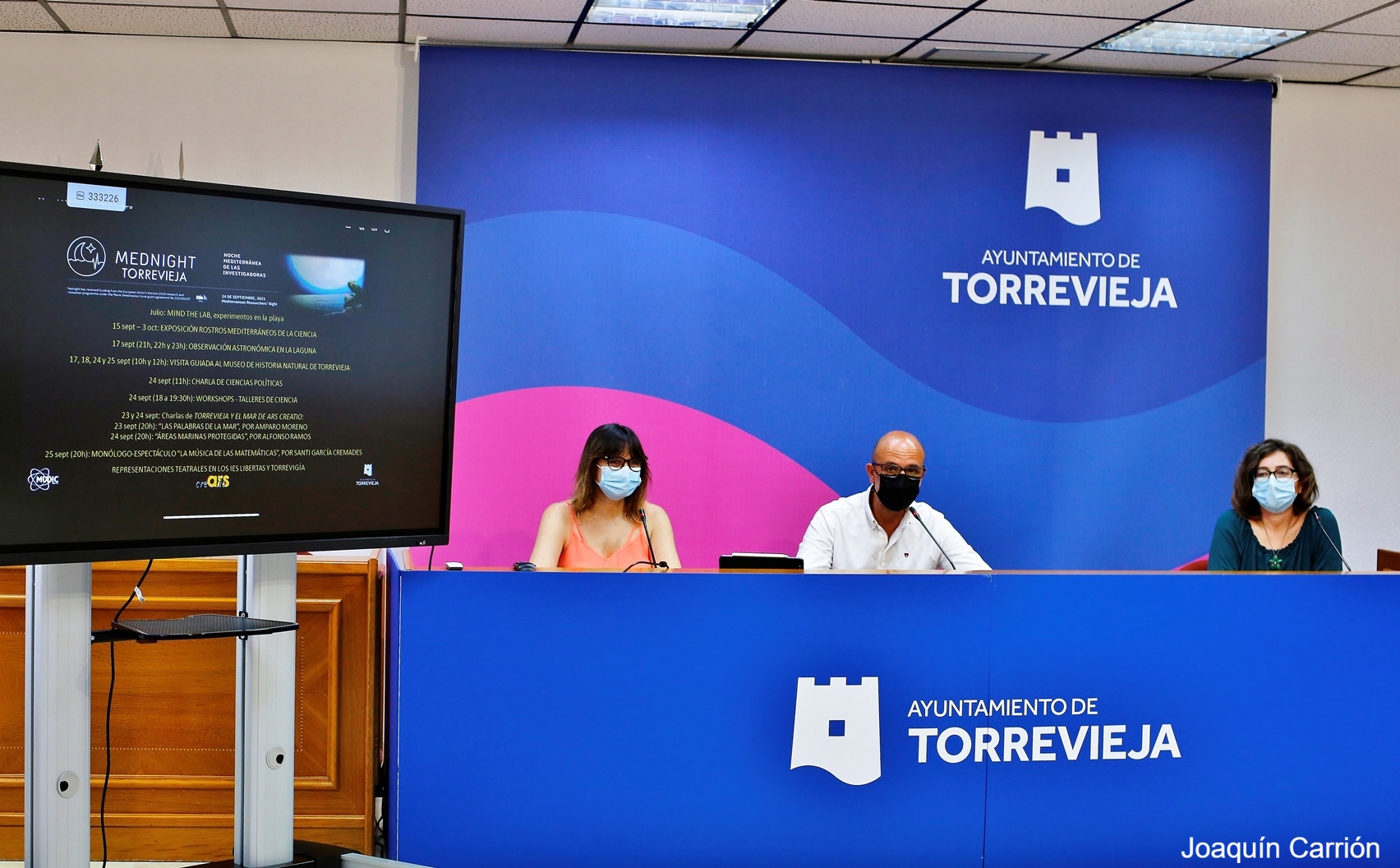 El concejal de Educación del Ayuntamiento de Torrevieja, Ricardo Recuero, la directora del Museo Didáctico Interactivo de Ciencias de la Vega Baja (MUDIC) María del Carmen Perea, y María Luisa Molina en representación de la Asociación Cultural Ars Creatio, han presentado las actividades y la programación de la MEDNIGHT, acción conjunta con la Ciencia como bandera común y en la que participan Universidades, centros de divulgación y centros de investigación de Grecia, Chipre, la Comunitat Valenciana y Región de Murcia.