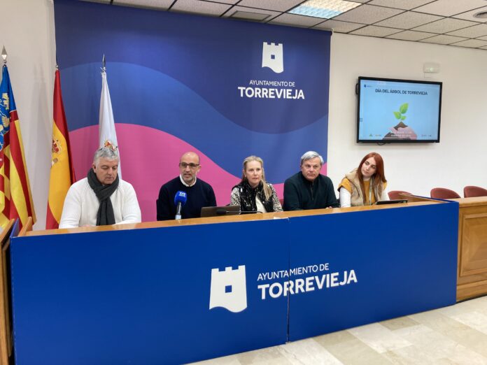 El concejal de Medio Ambiente del Ayuntamiento de Torrevieja, Antonio Vidal, junto al edil de Educación, Ricardo Recuero, el director-conservador del Parque Natural de las Lagunas de La Mata-Torrevieja, Francisco Martínez, la gerente adjunta de AGAMED, Gemma Cruz, y la responsable de Relaciones con el Cliente de Leroy Merlín, Natalia Vallejos, han presentado en la mañana de hoy las actividades de plantación y regeneración que se van a desarrollar con motivo de la celebración del Día del Árbol 2023. Unas acciones que se desarrollarán a lo largo de mañana martes, 31 de enero, y del miércoles, 1 de febrero, para escolares de los 14 centros educativos de Torrevieja.