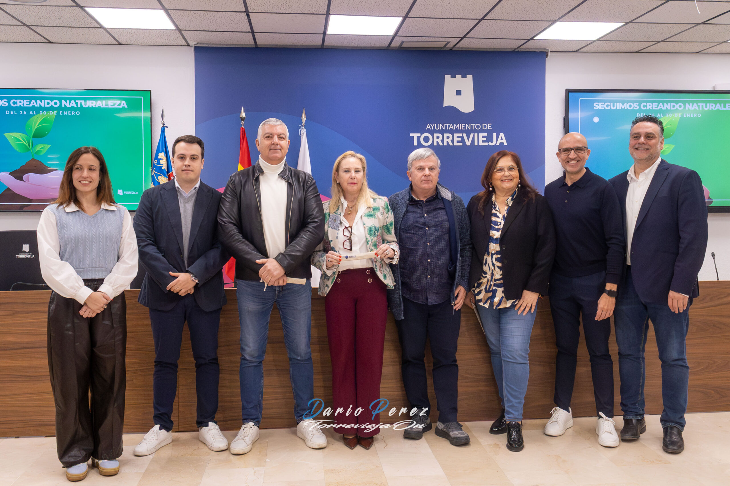El concejal de Educación del Ayuntamiento de Torrevieja, Ricardo Recuero, junto al edil de Medio Ambiente, Antonio Vidal, la concejal de Parques y Jardines, Concha Sala, el director-conservador del Parque Natural de las Lagunas de La Mata-Torrevieja, Francisco Martínez, y la gerente adjunta de AGAMED, Gemma Cruz, han presentado en la mañana de hoy las actividades de plantación y regeneración que se van a desarrollar con motivo de la celebración del Día del Árbol 2026. Unas acciones que los escolares de todos centros educativos de Torrevieja han comenzado hoy lunes, 26 de enero, y que se llevarán a cabo en esta zona hasta el próximo viernes, 30 de enero.