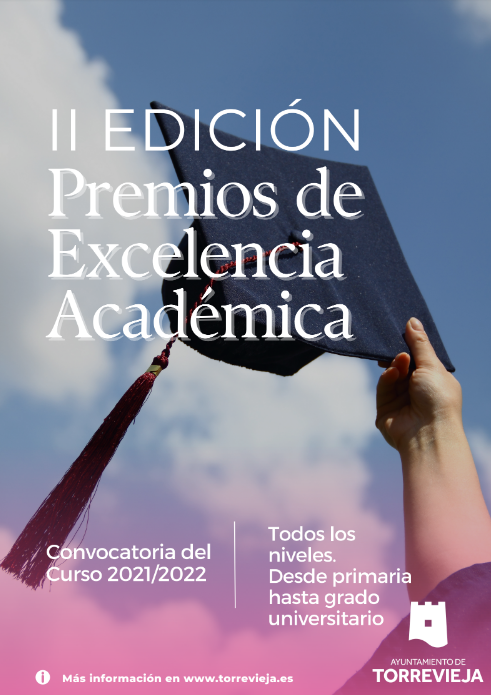 Con esta convocatoria el Ayuntamiento de Torrevieja abre por segundo año consecutivo un espacio público de recompensa económica al esfuerzo realizado, más allá́ de la satisfacción personal que cada alumno experimenta ante sus buenos resultados académicos. Unos premios que van destinados a alumnos de Primaria, ESO, Bachiller, FP grado medio, Grado universitario, estudios superiores de Enseñanzas Artísticas y FP grado superior.