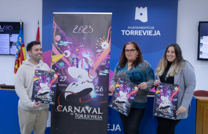 En la mañana de hoy ha sido presentada la programación de las fiestas del Carnaval de Torrevieja 2023, a cargo de la concejal de Fiestas, Concha Sala, y la tesorera y secretario de la Asociación del Carnaval, Laura Paredes y Armando Bueno. Concha Sala ha aprovechado para animar a todas las comparsas que van a participar el próximo miércoles en el desfile que recorrerá las calles del centro de Madrid promocionando el carnaval de Torrevieja, con motivo de la celebración de la Feria Internacional de Turismo (FITUR).
