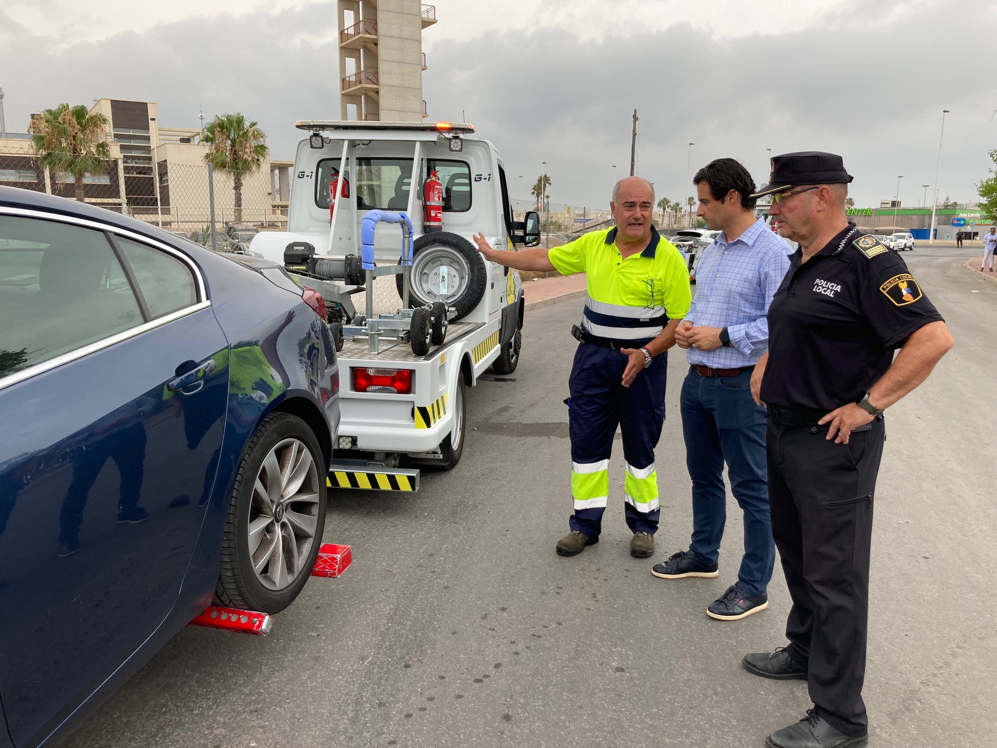 El alcalde de Torrevieja, Eduardo Dolón, y el concejal de Seguridad y Emergencias, Federico Alarcón, han presentado en la mañana de hoy el proyecto de urbanización y adecuación de la parcela para el nuevo Depósito Municipal de Vehículos, que se ubicará en un terreno propiedad del Ayuntamiento de 7.000 metros cuadrados de superficie, entre el Parque de Bomberos, el Ecoparque y el Albergue Municipal de Animales.