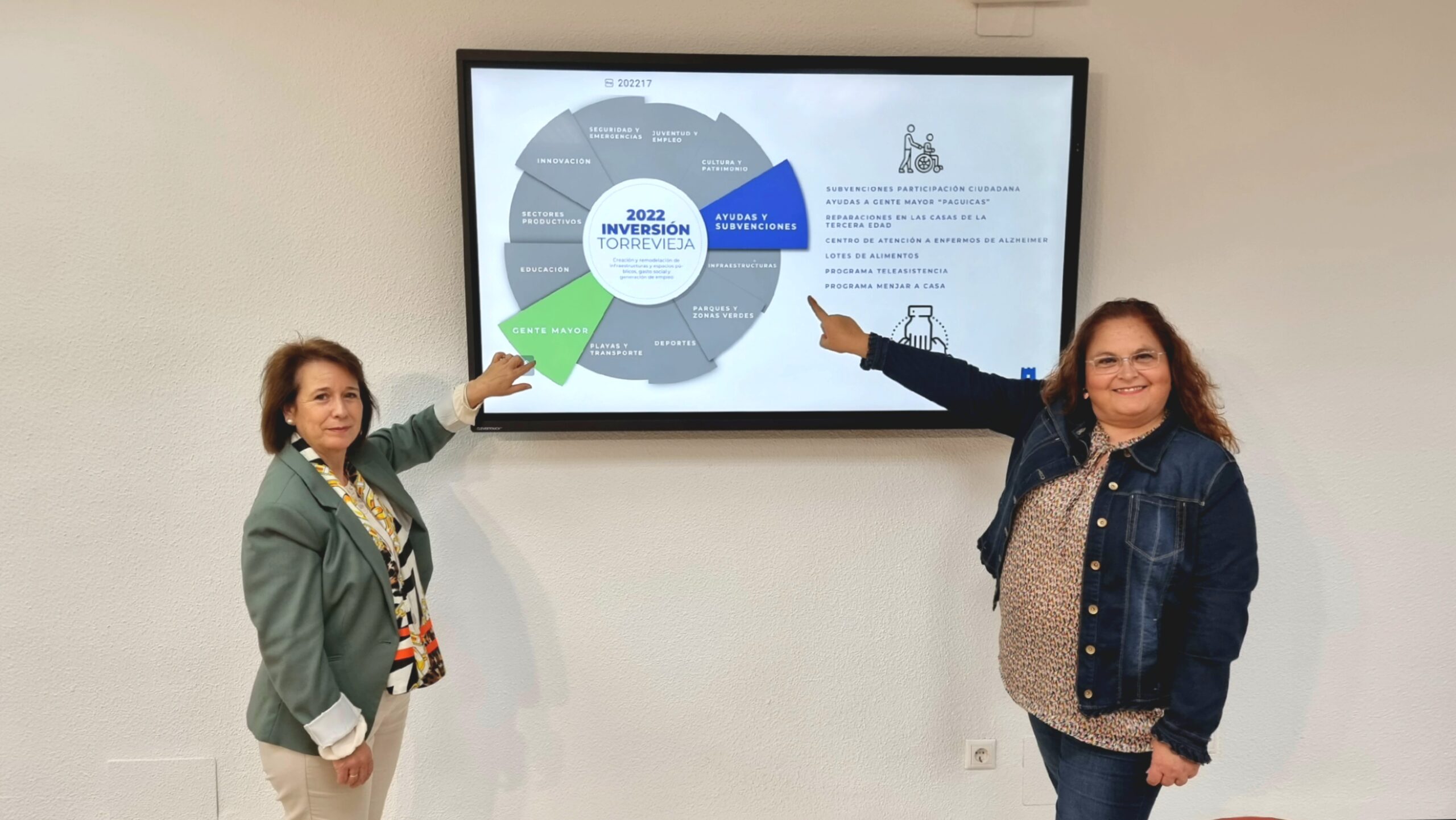 Por su parte la concejal de Gente Mayor, Inmaculada Montesinos ha querido resaltar el acondicionamiento de los centros de mayores “el pasado año pudimos ejecutar las obras del centro polivalente de La Mata y este año podremos cambiar el mobiliario”, ha comentado Montesinos. Con una dotación de 70.000€ se llevarán a cabo actuaciones de reacondicionamiento en la casa de la Tercera Edad de San Pascual, una de las más antiguas, en la que se renovarán sus dependencias y actualizar sus aulas. La cuantía total para las actuaciones en los diferentes centros de mayores es de 135.841,98€.
