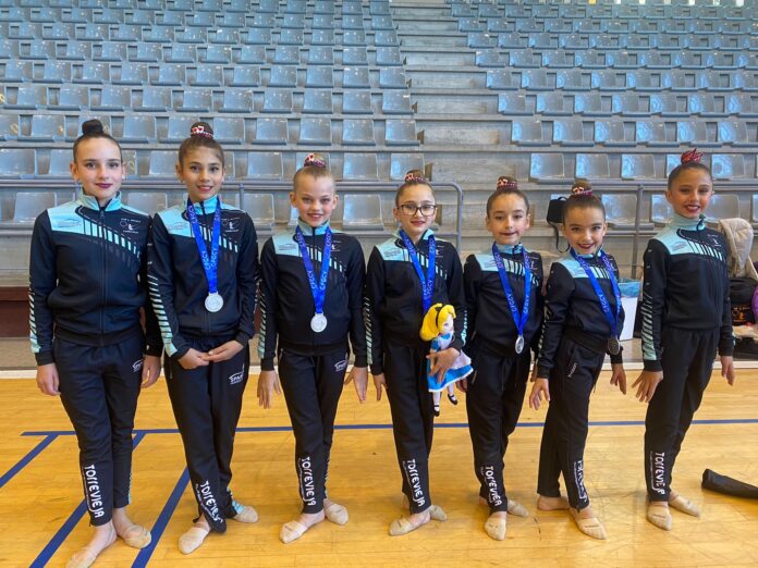 En categoría Alevín, Alicia Estañ, Alexandra Albu, María Cerdá, Ana Cerdá y Emilia Drapata lograron ser subcampeonas con su ejercicio de aros y pelotas.