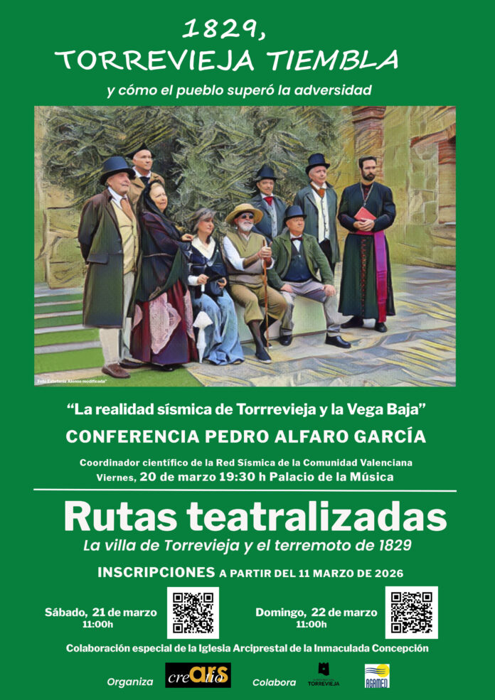 La asociación cultural Ars Creatio de Torrevieja organiza la séptima edición de las rutas históricas teatralizadas “1829, Torrevieja tiembla”, una propuesta cultural que invita a vecinos y visitantes a viajar en el tiempo para conocer cómo se vivió uno de los episodios más dramáticos de la historia de la comarca: el terremoto de 1829 que devastó Torrevieja y gran parte de la Vega Baja.