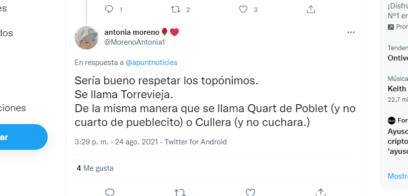 «Se llama Torrevieja», la delegada del Consell en Alicante, Antonia Moreno, reprocha a À Punt