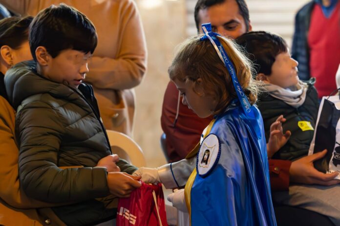 Para muchas familias, la recogida de caramelos forma parte del recuerdo infantil de la Semana Santa torrevejense. Los más pequeños viven la procesión con ilusión, atentos no solo al paso de las imágenes, sino también a ese momento en el que pueden recibir un dulce.