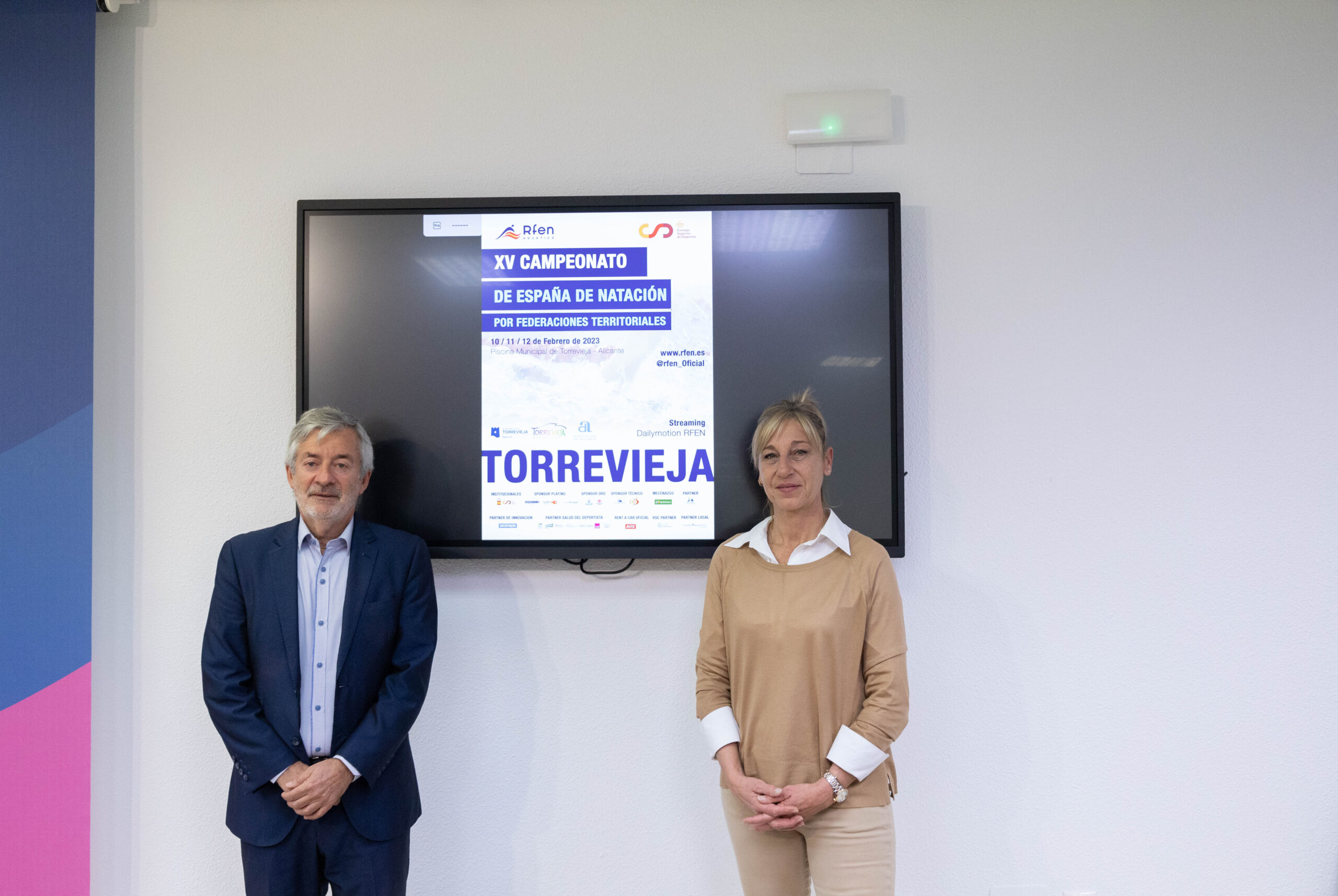 El Ayuntamiento de Torrevieja y la Real Federación Española de Natación (RFEN) unen sus fuerzas para presentar la 15ª edición del Campeonato de España de Natación Júnior/Infantil por Federaciones Territoriales, del 10 al 12 de febrero de 2023. Un evento anual de este deporte acuático y que es todo un referente a nivel nacional, en el que colaboran también la Diputación Provincial de Alicante y AGAMED.