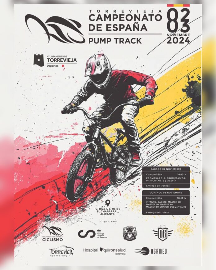 La concejal de Deportes del Ayuntamiento de Torrevieja, Diana Box Alonso, el presidente de la Federación Valenciana de Ciclismo, José Enrique Gutiérrez Cataluña, y el organizador y representante de la empresa AV Sport Ciclyng, Juan Ferrer López, han presentado en la mañana de hoy el Campeonato de España BBT Pump Track, que se celebrará el sábado 2 y domingo 3 de noviembre, en la pista de Pump Track del Parque de la Siesta, el más grande del mundo, según han confirmado el presidente de la Federación Valenciana de Ciclismo y el organizador del campeonato.