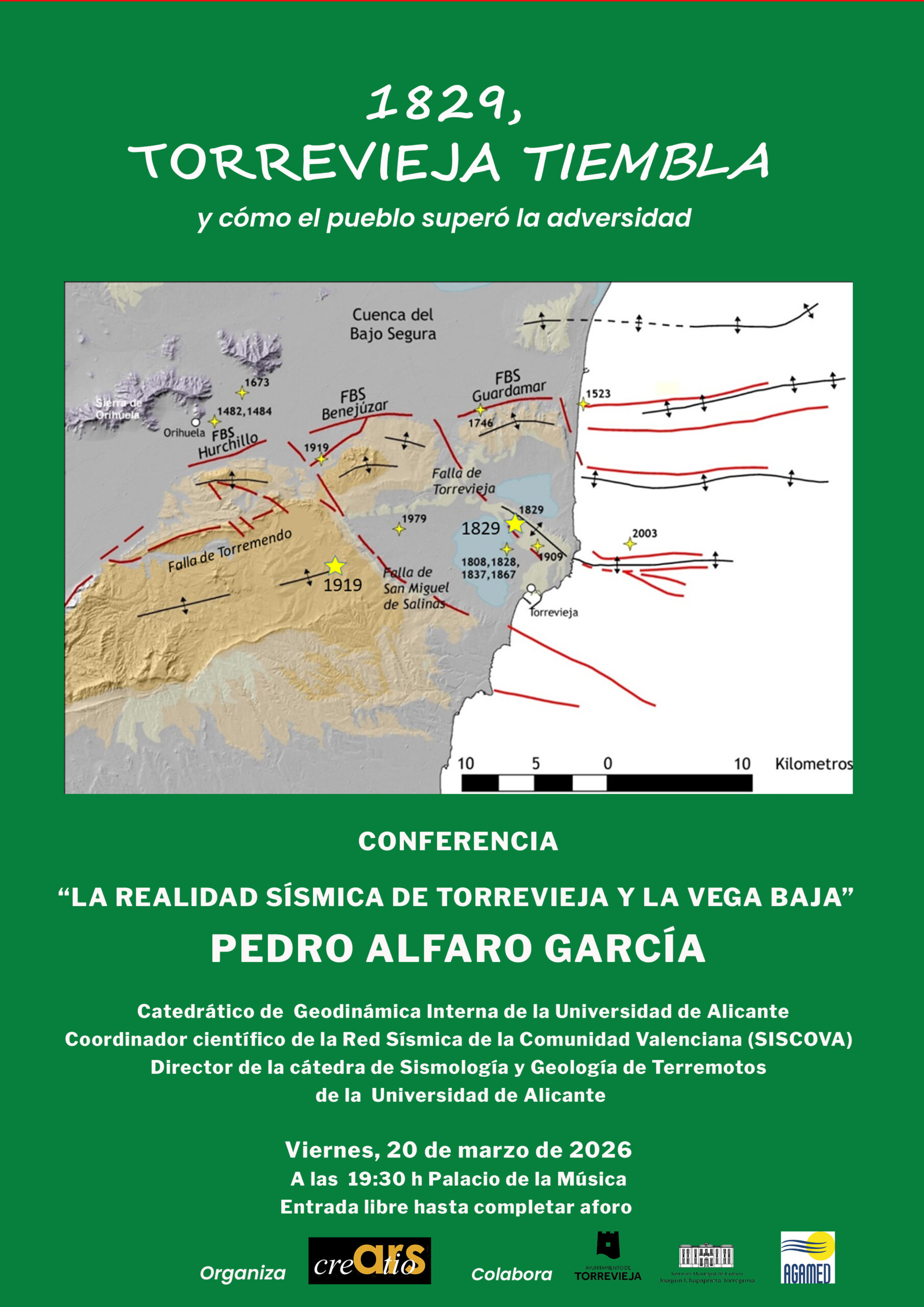 La ciudad de Torrevieja acogerá el próximo viernes 20 de marzo de 2026, a las 19:30 horas, una conferencia centrada en la actividad sísmica de la zona bajo el título “La realidad sísmica de Torrevieja y la Vega Baja”. El evento tendrá lugar en el Palacio de la Música de Torrevieja, con entrada libre hasta completar aforo.