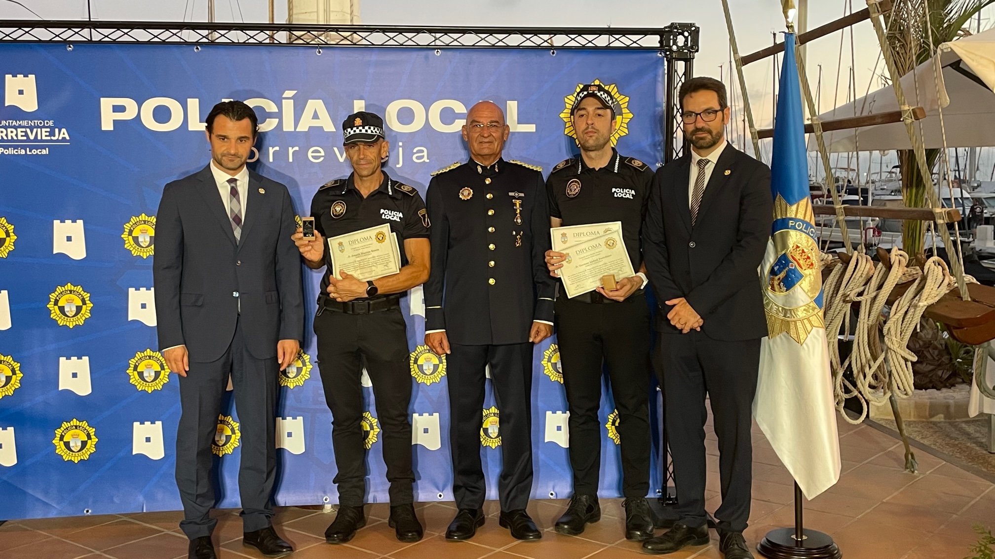 Seguidamente, en el Real Club Náutico Torrevieja (RCNT), tuvo lugar el acto de entrega de reconocimientos y méritos a los miembros de la Policía Local, acto presidido por el alcalde de la ciudad, Eduardo Dolón. Cerca de una centena de agentes recibieron reconocimientos y méritos por distintos motivos en este acto oficial.