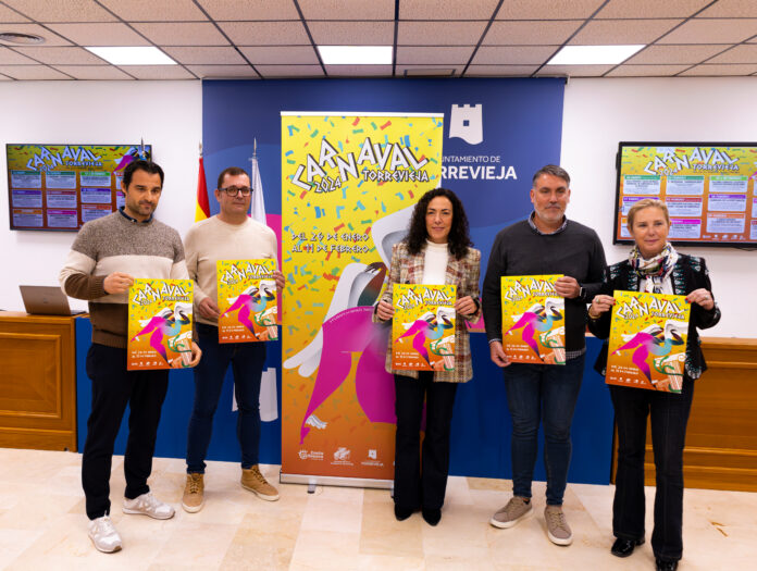 La concejal de Fiestas, Rosario Martínez Chazarra, acompañada del presidente de la Asociación del Carnaval de Torrevieja, Paco Pizana y el vicepresidente, César Berná, han presentado en rueda de prensa la programación del Carnaval de Torrevieja 2024. Una programación cargada de eventos, actividades, música, color y estructurado de forma turísticamente más atractivo, concentrando los eventos los fines de semana, para que el público interesado pueda venir a visitar una de las fiestas más interesantes a nivel autonómico de nuestro municipio.