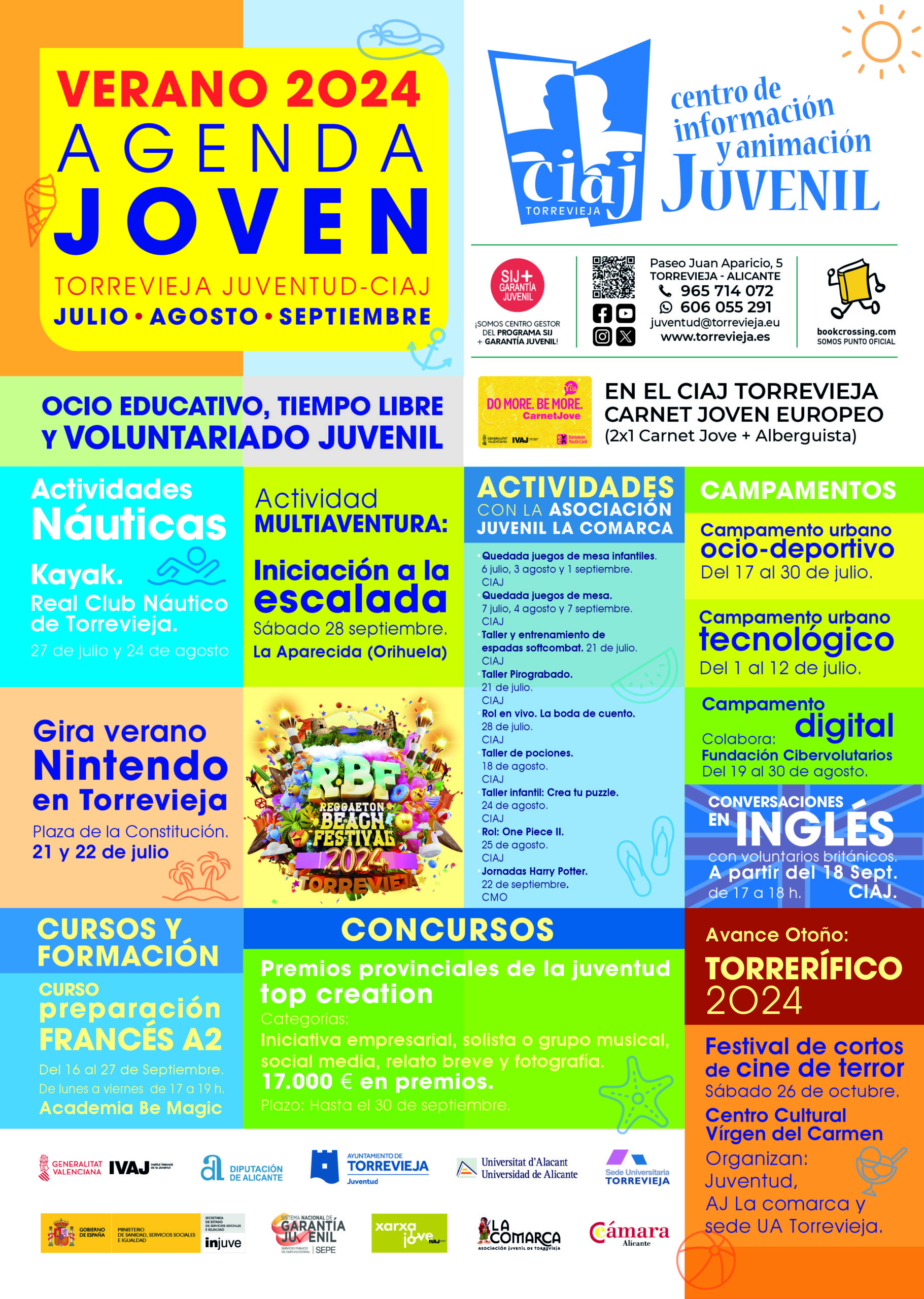 El concejal de juventud recuerda que para más información sobre las actividades de Juventud los interesados pueden acudir presencialmente al CIAJ o informarse a través de sus redes sociales, teléfono 965714072, Whatsapp 606055291, correo juventud@torrevieja.eu y en la web municipal www.torrevieja.es. Inscripciones en los cursos y activades de Juventud a través de la sede electrónica del Ayuntamiento de Torrevieja https://torrevieja.sedelectronica.es/