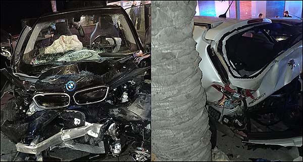 Esta madrugada sobre las 4,30 horas, un vehículo de gran cilindrada, con cuatro ocupantes circulaba a gran velocidad por la calle Ramón y Cajal y por motivos que se están investigando, a la altura del Kiosko “El Tintero”, en las inmediaciones a la curva que da acceso a la Playa del Cura, se salió de la calzada y arrolló a varios coches que se encontraban aparcados correctamente