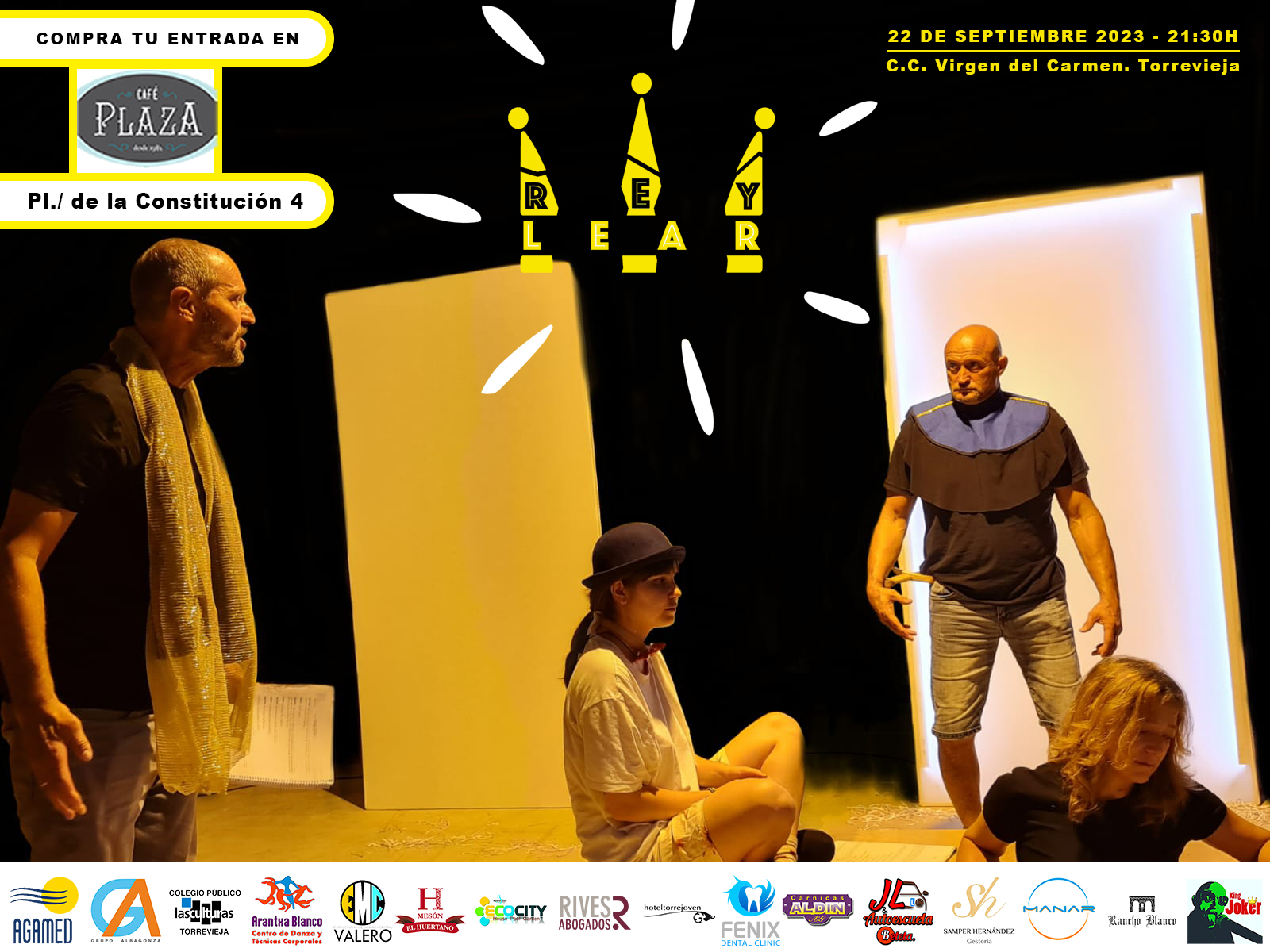 También aprovechamos para recordaros que el 22 de septiembre a las 21:30H, el grupo de teatro de La Cueva de Melpómene, realizará en en el C.C. Virgen del Carmen de Torrevieja, la representación teatral de Rey Lear.